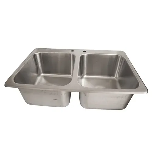 Drop-In Sink, two compartment, 31-1/4"W x 20-5/8"D x 10"H overall size, 14" wide x 16" front-to-back x 10" deep compartments, includes deck mount faucet (BKD-8G-G) & (2) basket drains (BKDR-4), 18/304 stainless steel construction, NSFQ & A