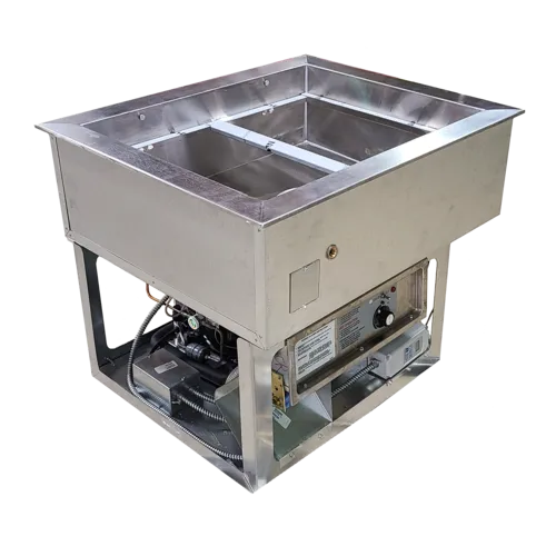 Dual Temperature Drop-In Hot/Cold Food Well, (2) well, holds standard 12" x 20" food pans and fractional sized pans, 3" recessed top edge, coved corners, 18 gauge stainless steel exterior, 134A refrigerant, 115v/60/1-ph, 4.9 amps, 1/4 HP (cold), 208/240v/60/1-ph, 9.0/10.4 amps, 1.9/2.5 HP (hot), NSF, ULQ & A