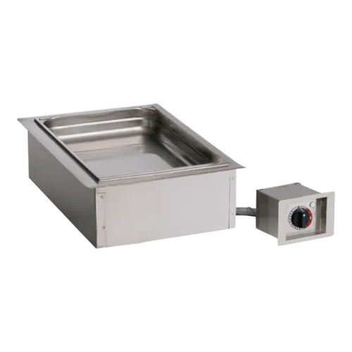 Hot Food Well Unit, Drop-In, Electric Halo Heat®, (1) waterless compartment, (1) GN 1/1 or (2) GN 1/2 or (3) GN 1/3 pan capacity (pans NOT included), holds up to 4" deep pans, includes (2) half/third size pan dividers, 230v/50/60/1-ph, 2.6 amps, 0.6 kW, cord & CEE 7/7 plug, NSF, UL, IPX3Q & A
