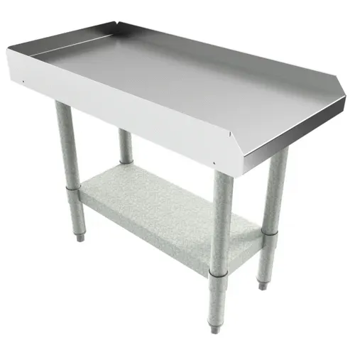 Economy Equipment Stand, 15"W x 30"D, 23" working height, 18/430 stainless steel top reinforced with support channels, three-sided 1-1/2" riser with hemmed edges, adjustable galvanized undershelf, galvanized legs & adjustable stainless steel feet, NSFQ & A