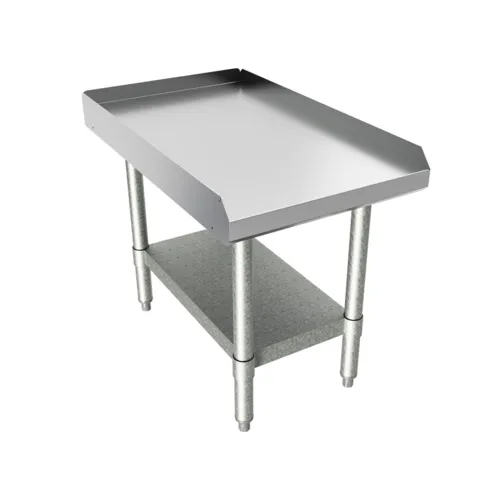 Economy Equipment Stand, 18"W x 30"D, 23" working height, 18/430 stainless steel top reinforced with support channels, three-sided 1-1/2" riser with hemmed edges, adjustable galvanized undershelf, galvanized legs & adjustable stainless steel feet, NSFQ & A
