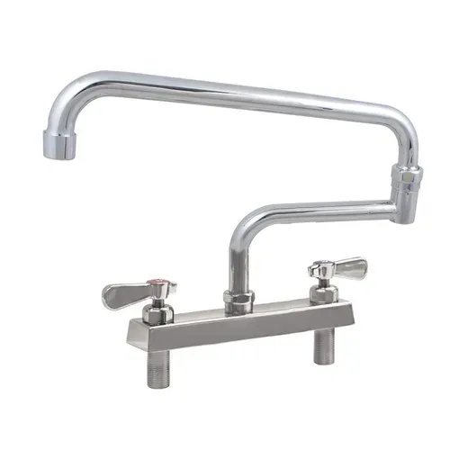 Evolution Faucet, deck mount, 8" centers, 18" double joint swing spout, quarter turn ceramic cartridges, integral check valve, T-304 cast stainless steel, stainless steel cover, lead free, NSF, cCSAusQ & A