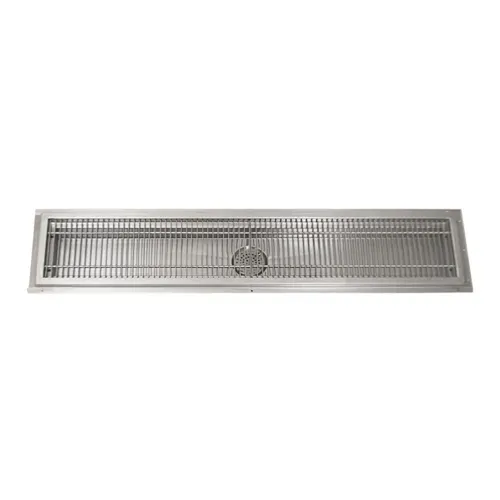 Floor Trough, 12"W x 12"D x 2-3/4" deep, removable flat bar subway grate, includes drain, 14/304 stainless steelQ & A