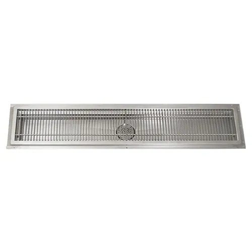 Floor Trough, 48"W x 18"D x 2-3/4" deep, removable flat bar subway grate, drain, 14/304 stainless steelQ & A