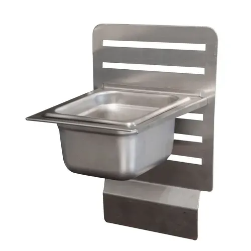 GrillCook Pro Upright Shelf Stand & 1/6 Pan Holder, small, 8-1/2" wide, universal, stainless steel, fits on grill/griddle splashes or equipment stand risersQ & A
