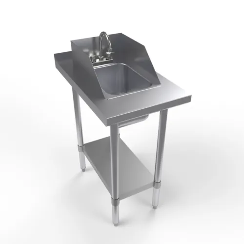 Filler Table, with drop-in sink, 18"L x 30"W x 41-3/4"H, 18/430 stainless steel top, 1-1/2" riser at rear, adjustable undershelf, stainless steel legs with adjustable high impact corrosion resistant feet, NSFQ & A
