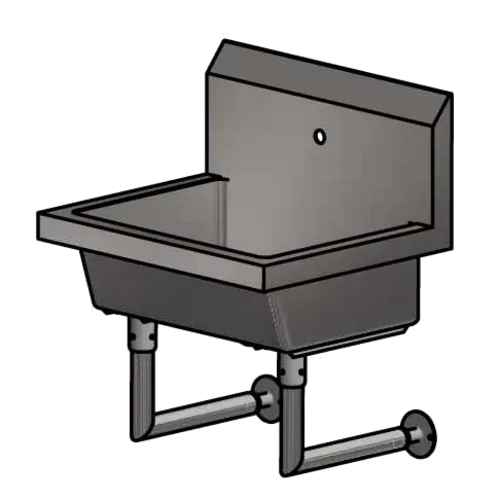Single Station Handwash Sink, wall mounted, single hole splash mount faucet hole, 24"W x 19-7/8" front-to-back x 8" deep bowl, 14/304 stainless steel sink, basket drain, 18 gauge stainless steel legs & supports, NSF (3-5 day lead time)Q & A