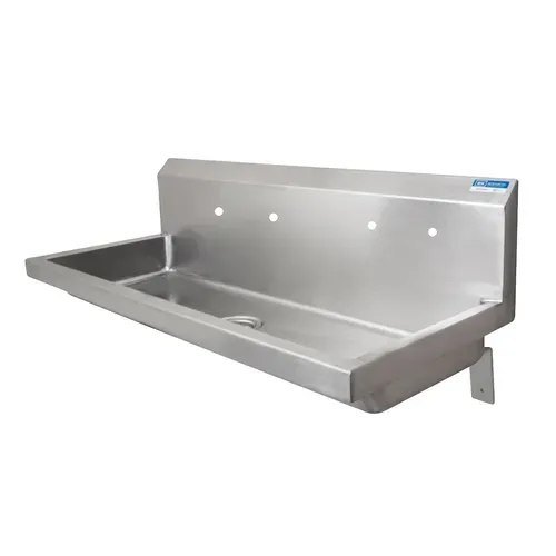 ADA Four Station Handwash Sink, wall mount, (4) sets of 8" OC splash mount faucet holes, 96"W x 16-1/4" front-to-back x 5" deep bowl, includes basket drain, 14/304 stainless steel sink, NSF, ADA Compliant (custom faucet hole configurations available) (3-5 day lead time)Q & A