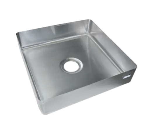 Pre-Rinse Bowl, 20"L x 20"W x 5"D, 3/4" covered corners, bottom crowned to 3-1/2" embossed opening, slope drain, interior/exterior seams polished, 16/304 stainless steel construction, NSF C2Q & A