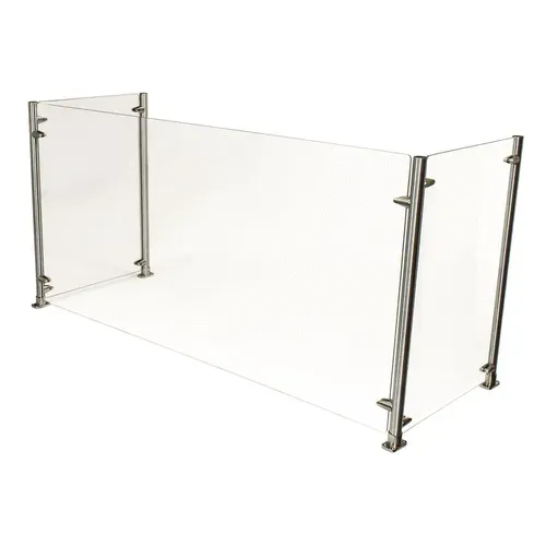 Cooking/Carving Sneeze Guard, 72", three-sided, 1/4" tempered glass panels, 24" high, 18 gauge stainless steel posts and end capsQ & A