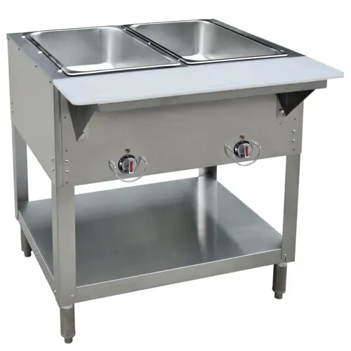 Hot Food Table, natural gas, (2) wells, with cutting board shelf, stainless steel, adjustable undershelf, 3,500 BTUs per burnerQ & A