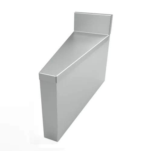 Underbar Corner Filler, rear angle, 15⁰, 18GA stainless steel, attaches to sides of (2) 21" underbar units, 4" riserQ & A