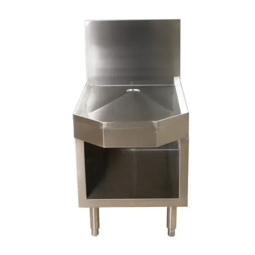 Underbar Frozen Drink Machine Stand, 18" x 24", stainless steel cabinet base, low work surface fits most machines, rear drain with raised sides to prevent spillage, stainless steel legs with adjustable foot, accepts optional adjustable shelf.Q & A