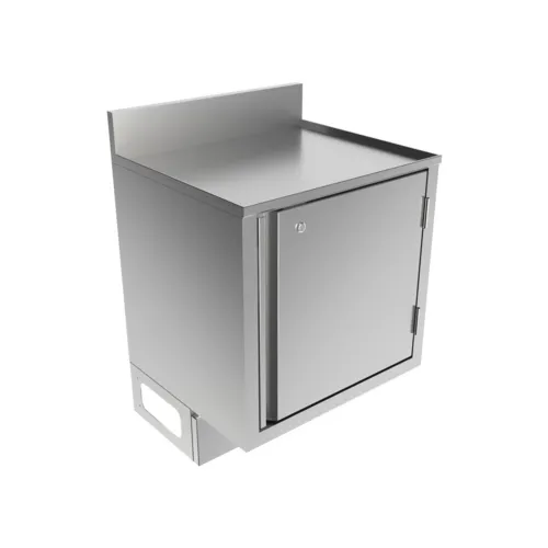 Call Series Underbar Cabinet, flat top, 24"x21", pedestal base, 18-gauge stainless steel construction, accepts optional adjustable shelf, riser, hinged door, (3-10 Day Lead Time).Q & A