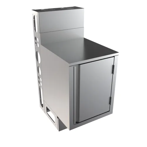 Underbar Cabinet, flat top, 18"x21", base with die wall, 18-gauge stainless steel construction, accepts optional adjustable shelf, riser, hinged door, (3-10 Day Lead Time).Q & A