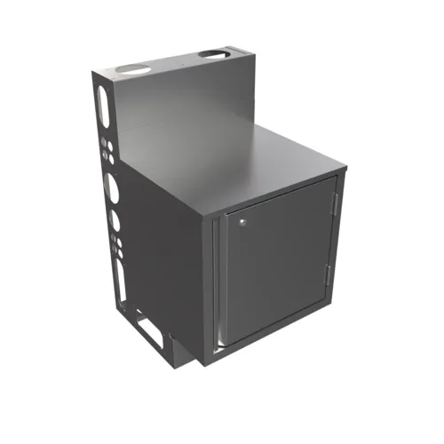 Top Shelf Underbar Cabinet, flat top, 24"x21", die wall, 18-gauge stainless steel construction, accepts optional adjustable shelf, riser, hinged door with lock, (3-10 Day Lead Time).Q & A