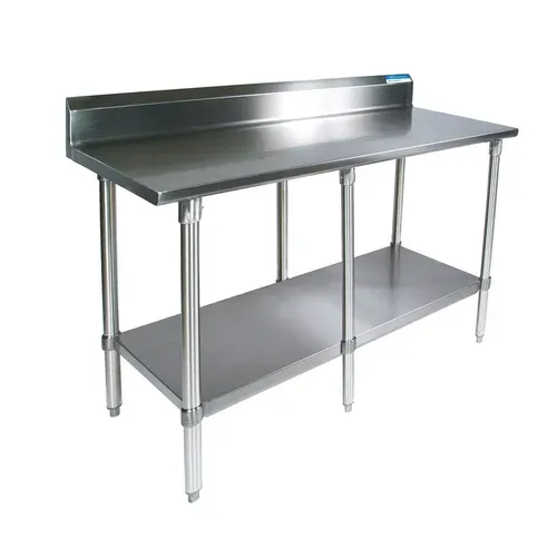 Work Table, 96"W x 24"D, 18/430 stainless steel top, with turndown edges on front & sides, reinforced with channels, 5" backsplash, adjustable galvanized undershelf, (6) 1-5/8" dia. galvanized legs, adjustable high-impact corrosion-resistant feet, NSFQ & A