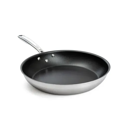 Thermalloy® Fry Pan, Tri-ply, 11"/28cm, ProGrip stay cool hollow cast riveted handle, 18/8 stainless steel, non-stick finishQ & A