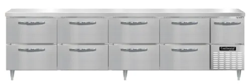 Designer Line Refrigerated Base, 118" wide, reinforced stainless steel work top, stainless steel exterior, front, sides & interior, (8) drawers & (1) half height field rehingeable door, 6" adjustable stainless steel legs, , side-mounted refrigeration, NSF, CE, ETLQ & A