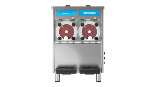 Crathco Frozen Beverage Machine (LV563102), counter model, air-cooled, self-contained, double flavor, 2ea. 10 qt. hopper, 2ea. 8.4 qt. freezing cylinder, lighted flavor sign, output capacity 2ea. 6.6 gallon per hour. R449A, 115vQ & A