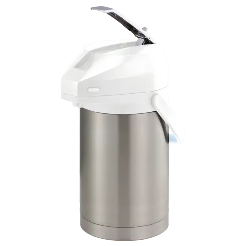 Service Ideas Color-Me SVAC Stainless Vacuum Insulated Airpot, 2.5-liter, lever lid, brushed stainless and whiteQ & A
