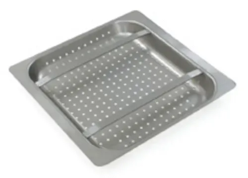 Pre-rinse Basket, 17-1/2"W x 19-1/2"L x 2-7/8"H, with slide bar, for dishtables, 304 type stainless steelQ & A