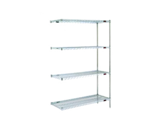 Add-On Shelving Unit, 4-tier, 48"W x 18"D x 74"H, wire shelves with patented QuadTruss® design, (2) 74"H posts, (2) "S" hooks per shelf, chrome-plated finish, KD, NSFQ & A