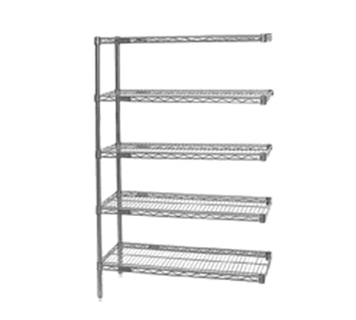 Add-On Shelving Unit, 5-tier, 36"W x 18"D x 74"H, wire shelves with patented QuadTruss® design, (2) 74"H posts, (2) "S" hooks per shelf, EAGLEbrite® zinc finish, KD, NSFQ & A