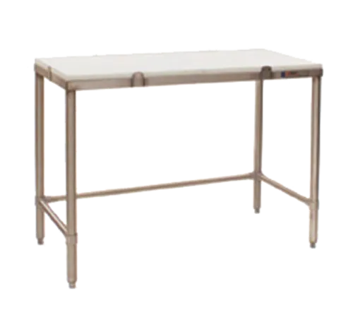 Chopping Table, 48"W x 24"D x 35-1/4"H, 1" thick white polymer top, 1-1/2" square stainless steel tubular frame, self-cleaning tabs lock top in place, stainless steel legs & side/rear crossrails, adjustable metal bullet feet, unit ships assembled & crated, NSF