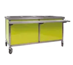 Director's Choice® Mobile Hot Food Table, electric, 78"W x 30"D x 34"H, wet or dry operation, (5) 12" x 20" pan size insulated wells with individual thermostatic controls, 16/304 stainless steel top, 304 stainless steel open-base frame & apron on operator side, laminated front panel holly berry red (Wilsonart D307-60) 5" poly casters (2 with brake), UL, NSF (more commercial electric steam tables, commercial serving counters, and food holding and warming equipment available)