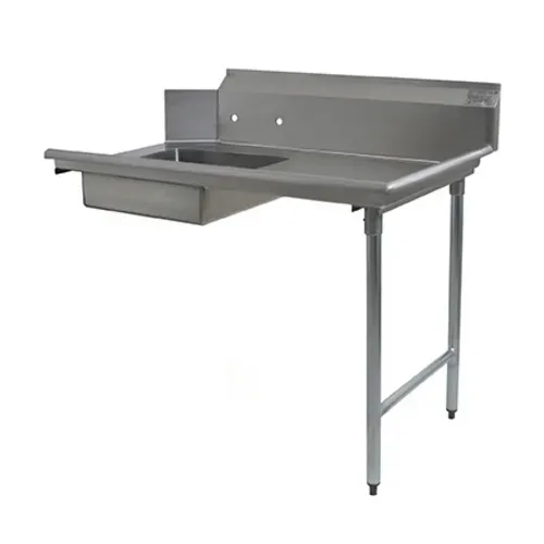 BlendPort® Soiled Dishtable, straight design, 60"W, right-to-left operation, 16/300 stainless steel top, 20" x 20" x 5" deep sink with 1-1/2" basket drain, stainless steel legs & crossbracing, NSF (flyer NET pricing)Q & A