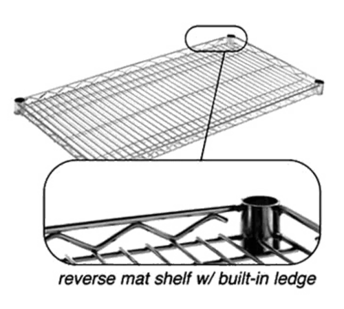 Reverse Mat Shelf, wire, 24"W x 24"D, patented QuadTruss® design, includes built-in ledges, 250 lbs. capacity, chrome finishQ & A