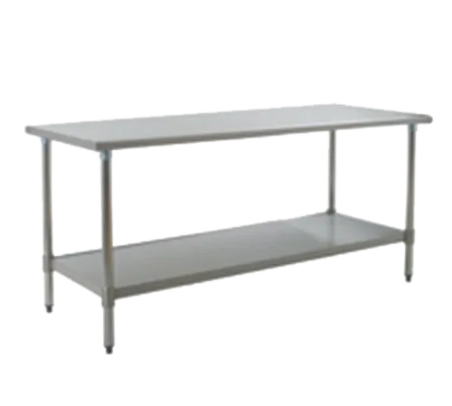 Budget Series Work Table, 72"W x 24"D, 430 stainless steel top, rolled edge on front & back, adjustable 430 stainless steel undershelf with marine edge, Uni-LokĀ® gusset system, (4) stainless steel legs & adjustable bullet feet, NSF