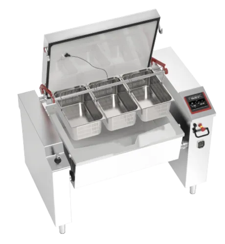 Multifunctional Cooker, 41 gal, electric, 65"W, motorised and insulated lid, stainless steel cooking vessel AISI 304 with 12mm bottom thickness, self-supporting stainless steel frame AISI 430, capacitive 7” touch screen control, integrated shower head, tank tilting and automatic return, emergency button, manual reset safety thermostat, IPX5 protection, stainless steel adjustable feet, 38.5 kW 3 phase 220-240V/60Hz 100 A, 32 kW 3 phase 208V/60Hz 110 A, 40.5 kW 3 phase 460-480V/60Hz 57 A, ETL, cETLusQ & A