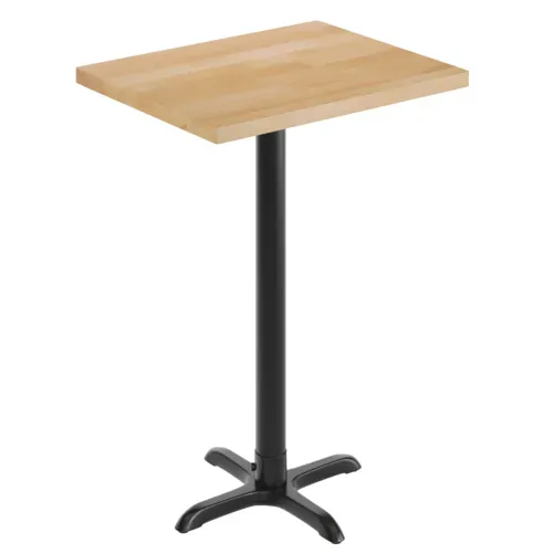 Bennett Commercial Indoor Tabletop, 24"W x 30"D x 43-1/2" H, rectangular, 22" x 22" bar height, solid wood, rust-resistant, black cast iron, X-base, naturalQ & A