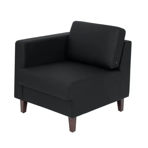 Hercules Artemis Left Arm Reception Chair, 28-1/4"W x 31-1/2"D x 31-3/4"H, LeatherSoft upholstery, includes: (2) AC outlets, (1) USB, (1) USB-C ports, wooden walnut legs with adjustable floor glides, blackQ & A