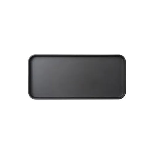 Platter, 13"L x 6"W x 1"H, rectangular, black, melamineQ & A