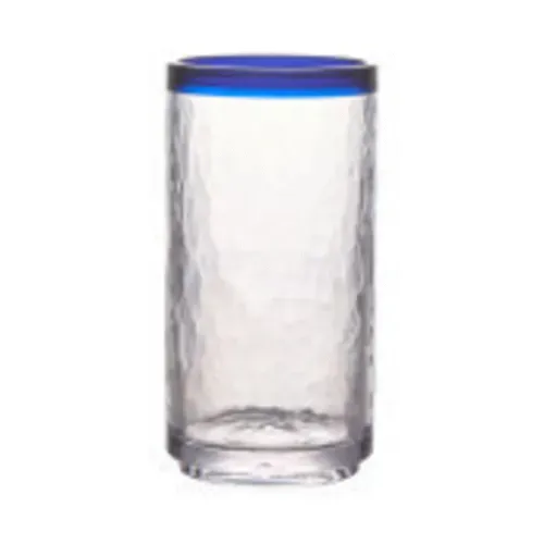 Solera Cooler Glass, 16 oz., 3" dia. x 6"H, SAN, clear, textured, with blue rimQ & A