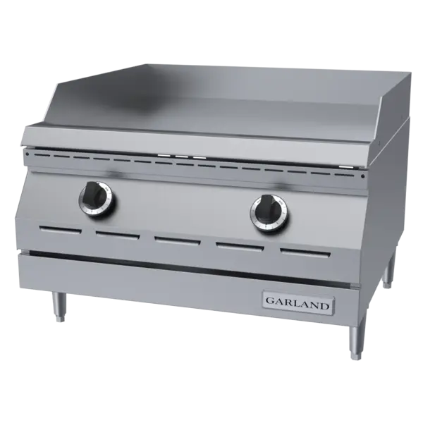 Electric designer series Commercial Griddles in three widths: models ED-15G, 15" (381mm) wide; ED-24G, 24" (610mm) wide and ED-36G, 36" (914mm) wide. Designed as free standing or to be banked with other ED series equipment. 24" (610mm) deep x 13-3/4" (349mm) high, easy clean design with stainless steel front and sides. Thermostat controlled, with improved insulation underneath the elements allowing for better heat efficiency. Concealed grease drawer behind lower hinged panel. Fully grooved or grooved section griddle available. Models with EDU prefix are "CE" Approved. Garland products are not approved or authorized for home or residential use, but are intended for commercial applications only. Garland will not provide service, warranty, maintenance or support of any kind other than in commercial applications.