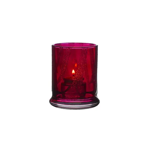 Votive Column Lamp, 3"W x 3"D x 3-3/5"H, glass, Stardust, ruby, 1 per case, (minimum = case quantity) (NON STOCK item)Q & A