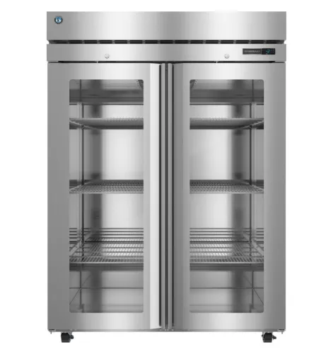 SteelheartĀ® Series Freezer, reach-in, two-section, 50.37 cu. ft., top mounted self-contained refrigeration system, solid state digital controller with temperature alarms & LED display, (2) full-height hinged glass doors, (6) epoxy coated wire shelves, stainless steel exterior front & sides, stainless steel interior, (4) 4" heavy duty casters (2 with brakes), R290 Hydrocarbon refrigerant, 1 HP, cord, NEMA 5-15P, cETLus, ETL-Sanitation (Replaces F2A-FG)Q & A