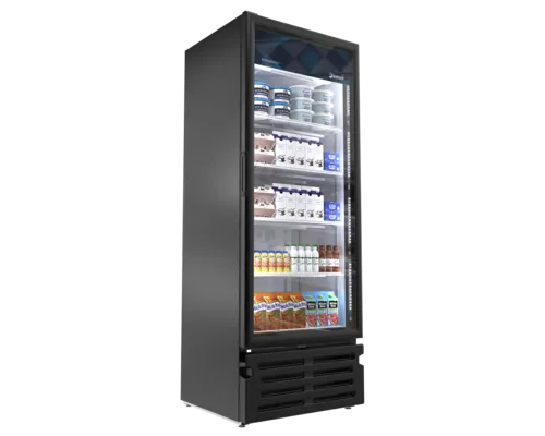 Vertical Cooler, 78-7/8"H x 29-1/2"W x 27-7/8"D, one plastic frame door, (5) shelves 24-3/4"W x 19-5/8"D, pre-painted steel exterior and interior, R290 refrigerant 2.3 oz, 1/3 HP compressor, finless low maintenance condenser, thermostat setting default cut-out 32°F (0°C), cut-in 44.6°F (7°C), ETC1H controller, 257.6 lux LED lighting (9 modules, 8 LEDs per module), 19.2 ft³ usable volume, 53' trailer load capacity, 82-1/4"H x 32-1/8"W x 32-5/8"D packaging dimensions, three-year limited warranty including parts and labor, additional two-year compressor warranty (USA & Canada only), 115v/60/1-ph, 7.0 amps, NEMA 5-15P plugQ & A