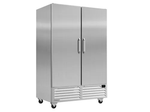 Vertical Reach-in Freezer, 83-1/8"H x 52-3/4"W x 35-3/8"D, (2) solid stainless steel doors, (6) black epoxy shelves 22-3/4" x 24-5/8", electronic temperature control, LED lighting, mechanical lock, 4" pre-installed casters, stainless steel exterior and interior, dynamic condenser, R290 refrigerant 4.9 oz, 10.82 kWh/24h energy consumption, 1/2 HP compressor, 118" cord length, NEMA 5-15P plug, CIR WiFi controller, 115v/60/1-ph, 9.4 amps, ULQ & A