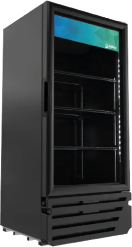 Vertical Cooler, 6.86 cu. ft., 1 door, 24"W, 4 shelves, plastic frame door, thermostat setting 32°F to 44.6°F, electronic temperature controller, spark-free refrigeration components, LED lighting, R290 hydrocarbon refrigerant, dynamic condenser, pre-painted steel exterior and interior, compressor 1/10 HP, 115V/60/1-ph, 3.2 amps, NEMA 5-15P plug, ETC1H controller, DOE, UL, ENERGY STAR®Q & A
