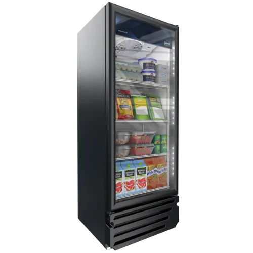 VR12, Vertical Cooler, 63-7/8"H x 24-3/4"W x 24-5/8"D, one door with V7 plastic frame, (4) shelves 20-7/8"W x 17-1/4"D, electronic temperature controller, spark-free refrigeration components, LED interior lighting (432 Lux output, 7 modules with 8 LEDs each), pre-painted steel exterior and interior, R290 refrigerant (1.9 oz), 1/5 HP compressor, finless low maintenance condenser, thermostat cut-out 32°F (0°C), cut-in 44.6°F (7°C), cord length 118" (3000 mm), energy consumption 1.460 kWh/24h, 11.5 ft³ usable volume, 3-year limited warranty including parts and labor, additional 2-year compressor warranty (USA & Canada), 115v/60/1-ph, 4.1 amps, NEMA 5-15P plug, UL, NSF, ENERGY STAR®Q & A