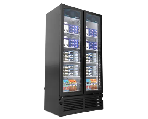Imbera Vertical Cooler, 78-3/4"H x 39-3/8"W x 26-3/8"D, two doors with V7 plastic frame, (10) shelves 15-7/8"W x 19-3/8"D, pre-painted steel exterior and interior, R290 refrigerant (2.8 oz), 1/3 HP compressor, finless condenser, electronic temperature controller ETC1H, 155 Lux LED lighting (18 modules, 8 LEDs per module), spark-free refrigeration components, energy efficient, eco-friendly HC refrigerant, 26.1 ft³ usable volume, 115v/60/1-ph, 7.5 amps, NEMA 5-15P plug, UL, ENERGY STAR®Q & A