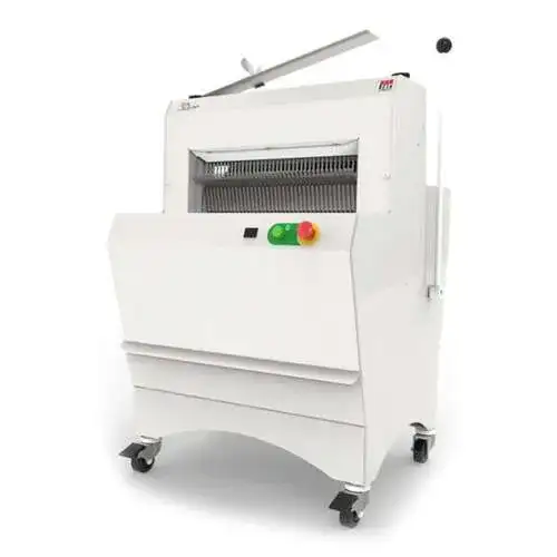 Bread Slicer, floor model, semi-automatic, up to 200 loaves per hour, specify slice thickness” dual slice thickness, 24" maximum loaf dimension, continuous slicing, loaf pusher, crumb tray, casters (2 locking), with rear safety cover, 0.49 kW, 120v/60/1-ph, 7.3 amps, NEMA 5-15P, ETL-Sanitation, cETLusQ & A