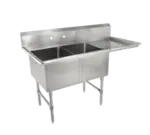 Pro-Bowl Sink, 2-compartment, 53-1/8"W x 29-1/2"D x 44-1/16"H overall size, (2) 24"W x 24" front-to-back x 12" deep compartments, 10"H boxed backsplash with 45° top & 2" return, (1) set of splash mount faucet holes with 8" centers, 3-1/2" die-stamped drain openings, 16/300 stainless steel construction, stainless steel legs, adjustable front & side bracing, adjustable bullet feet, NSF, CSA-Sanitation, KD