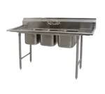 John Boos 3PB18-1D30L Commercial Sink, (3) Three Compartment, 16 Gauge Stainless Steel Construction with Stainless Steel Legs and With Left-hand Drainboard - 88.19" W
