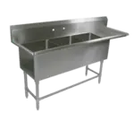 John Boos 43PB18-1D30L Commercial Sink, (3) Three Compartment, 14 Gauge Stainless Steel Construction with Stainless Steel Legs and With Left-hand Drainboard - 88.19" W